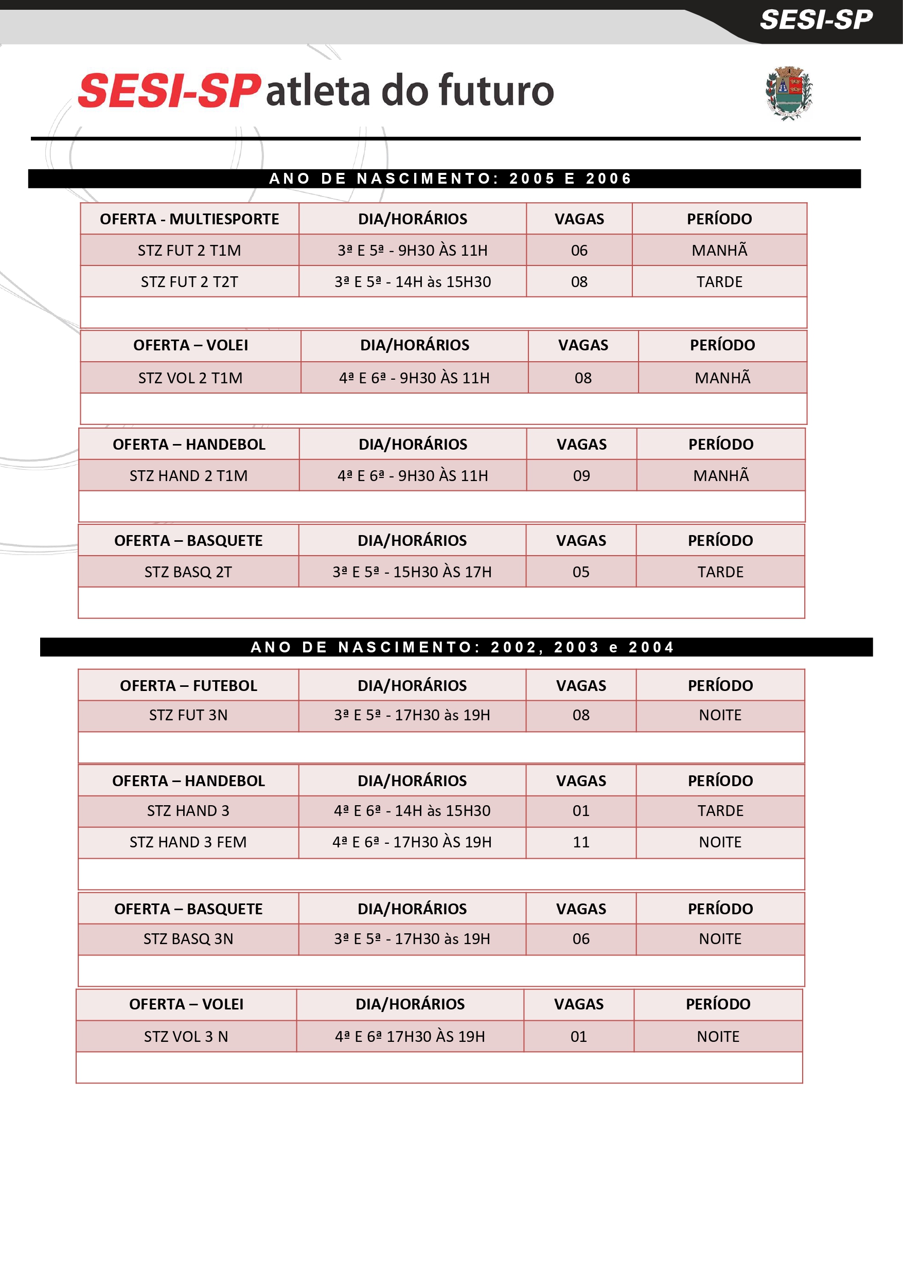 O Programa Atleta do Futuro, parceria SESI-SP e Prefeitura Municipal de Sertãozinho, tem como objetivo promover formação e cultura esportiva para crianças e jovens de 6 a 17 anos, contribuindo para o desenvolvimento do futuro cidadão.