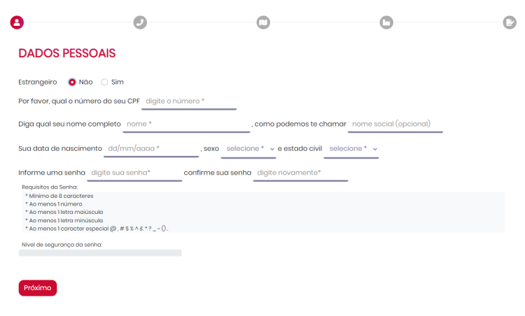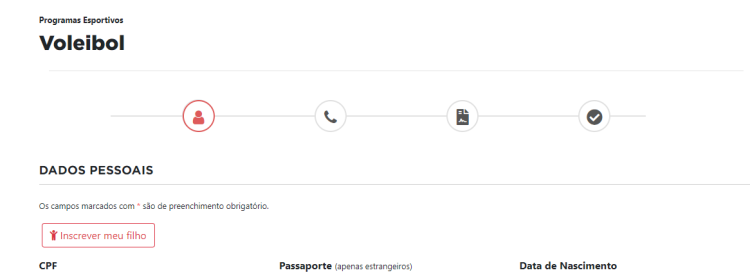3. Preencha os 4 passos do cadastro até chegar na confirmação de inscrição.